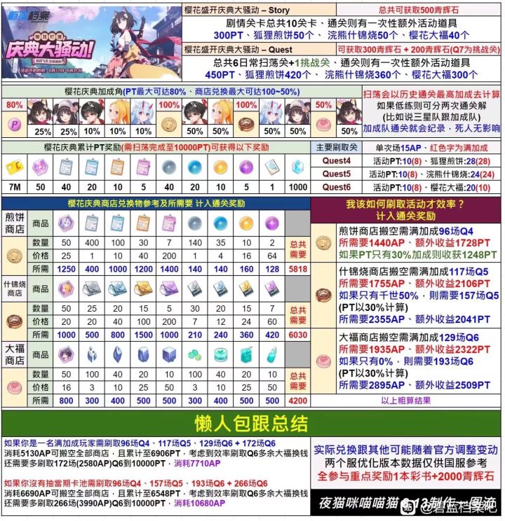 因为复刻和高收益的n3h3重叠了,所以去看了一下之前小狐狸活动刷满要多少体力,一看吓一跳满加成都要近8000体力,顿感太离谱,然后去db看了一眼发现复刻的每关基础材料给的比初版要多加成角色也要多,所以奖励内容没变的话,需要的体力少了很多