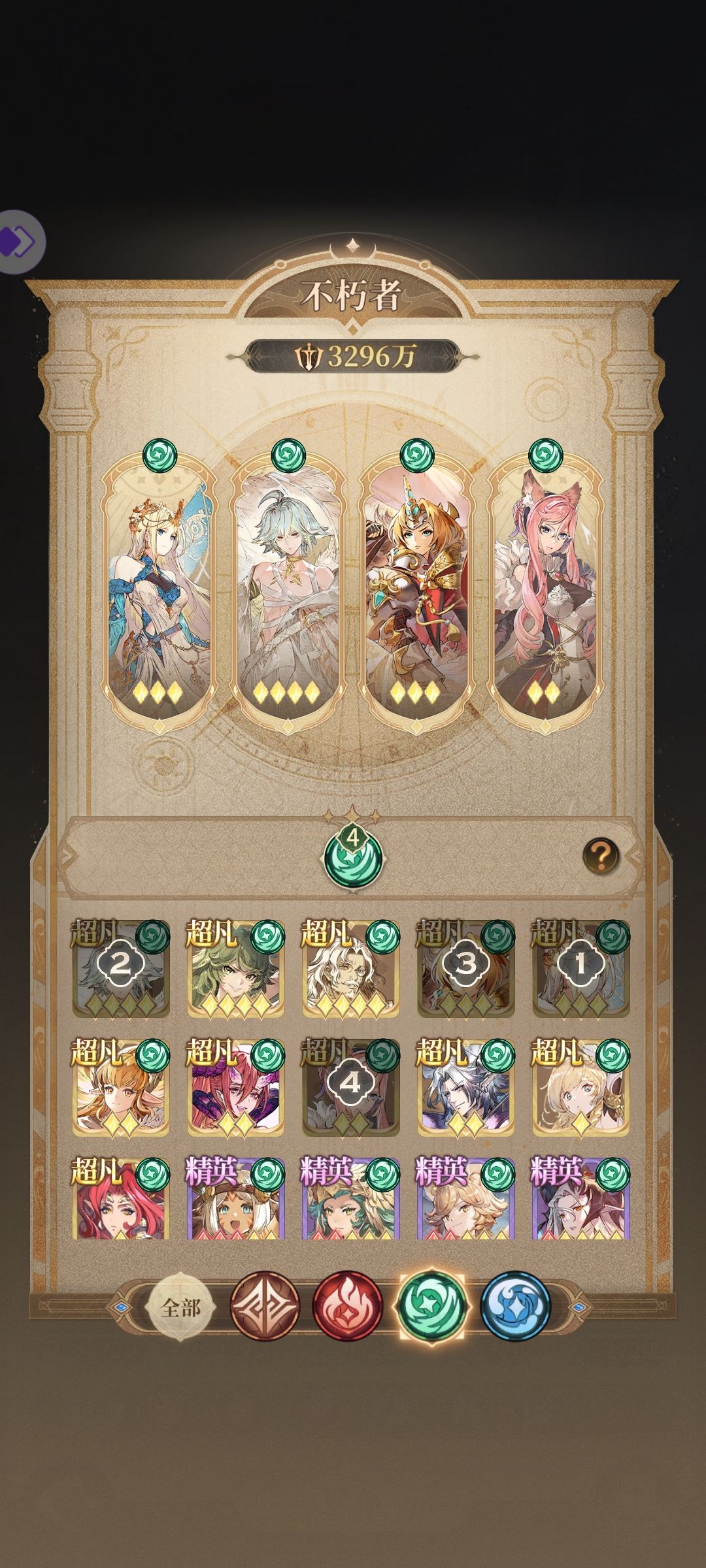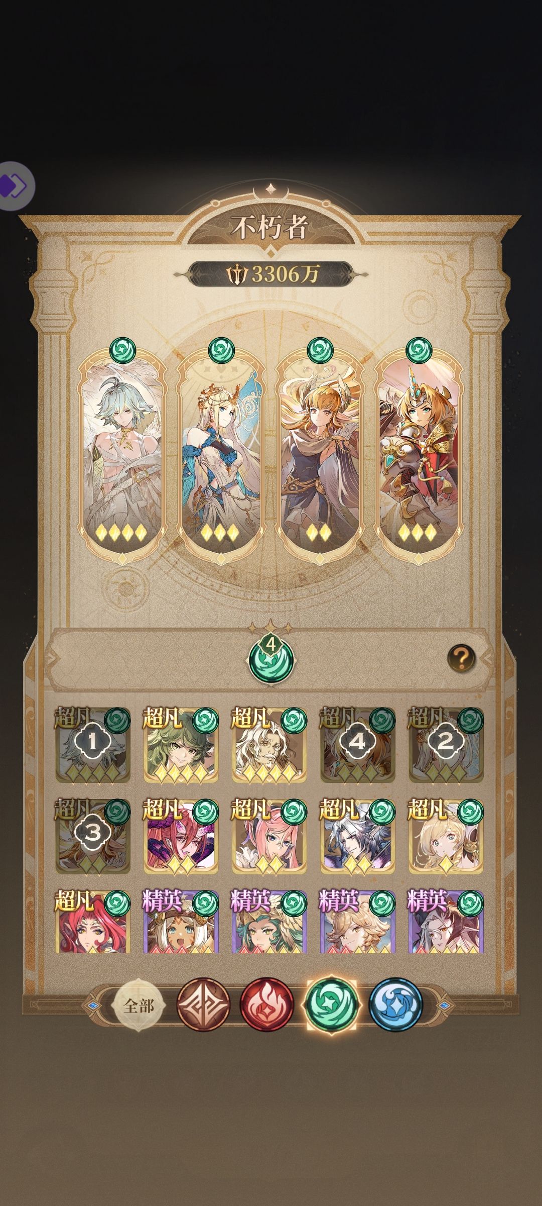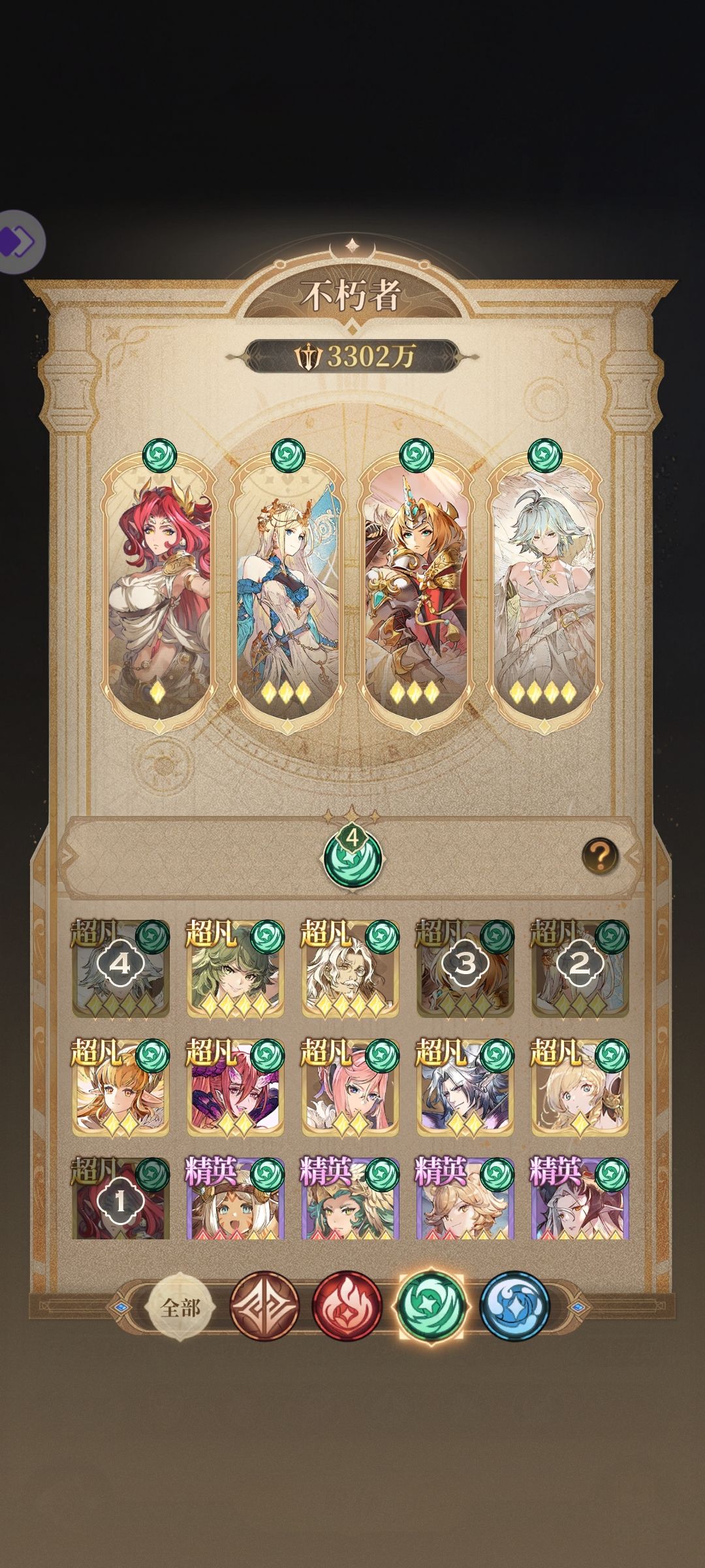 3.因每个人不朽者不同,且练度不同,boss阵的不朽者搭配需依据你个人情况自行观察搭配,图6-图9是我给出我常用的搭配思路,并不是适用每个人,还需自己揣摩适配自己号的搭配。