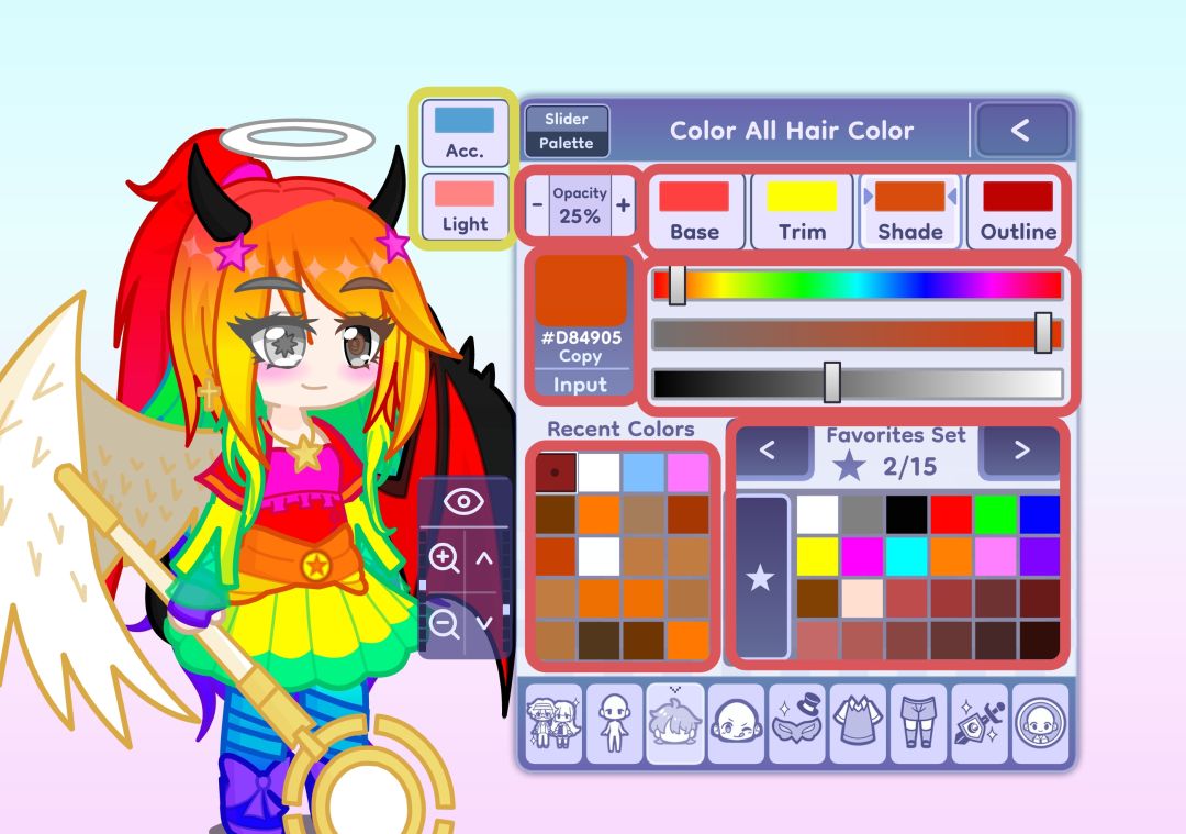 黄色是菜单选区(点击菜单键进入)、红色是T扳机选择选区。除了↓键进入调色界面以外其他都是B键返回。