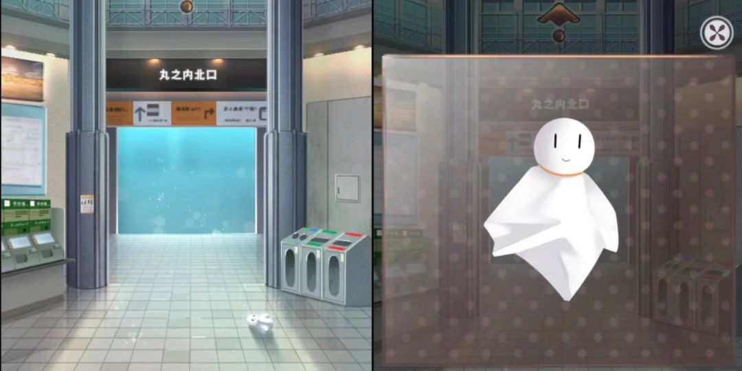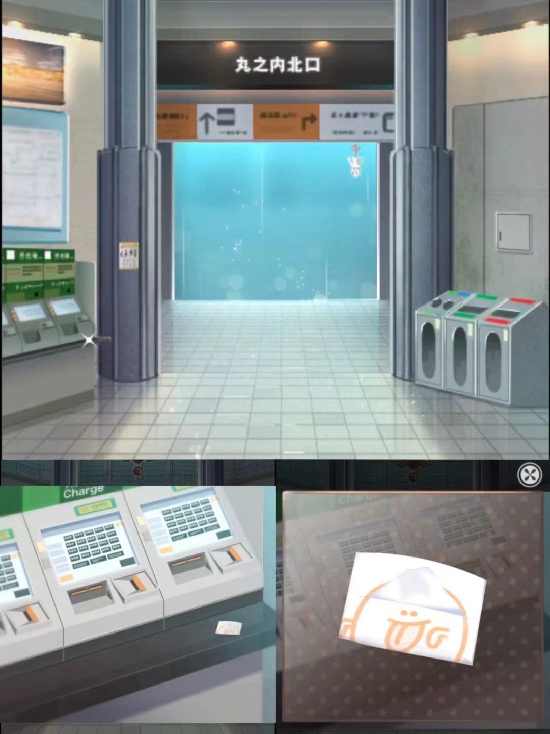 →↓←来到北检票口 ↑对天花板使用望远镜 再放大雨伞后打开