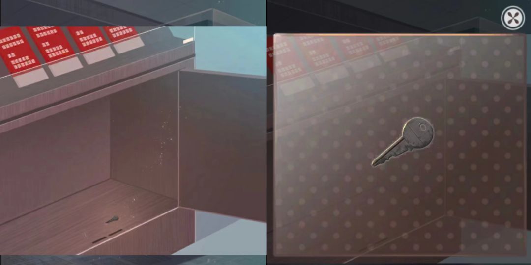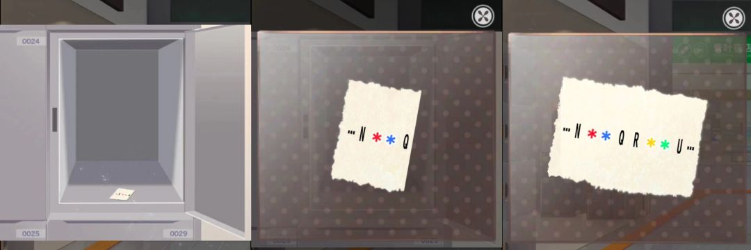 在左侧浅灰色储物柜上输入密码♦️❤️♣️ 获得另外半截神秘纸片 组合神秘纸片