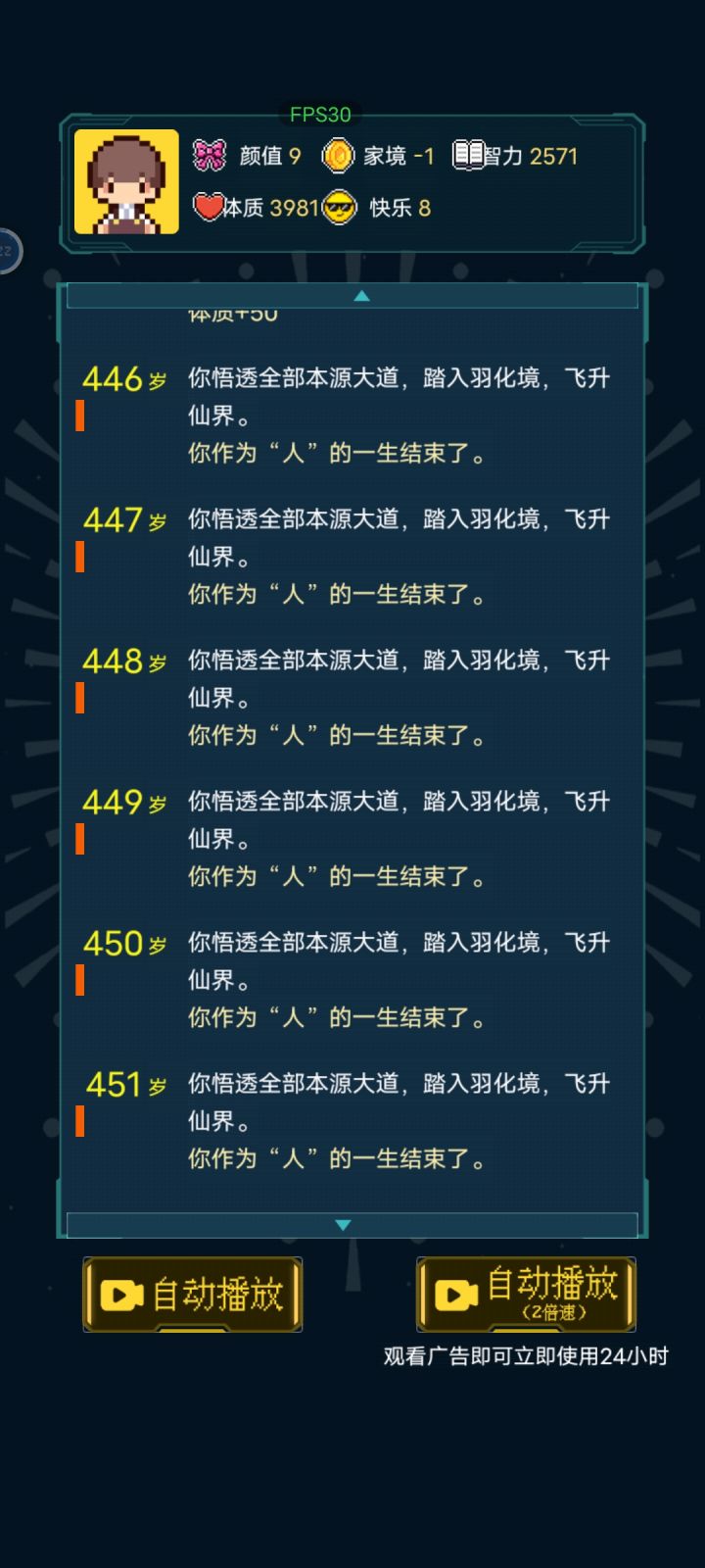 乞丐处买到书就稳了。我这买到书后面直接到大结局,不需要渡劫了。属性主智力体质,其他的也要点1-2,要不然容易早死。