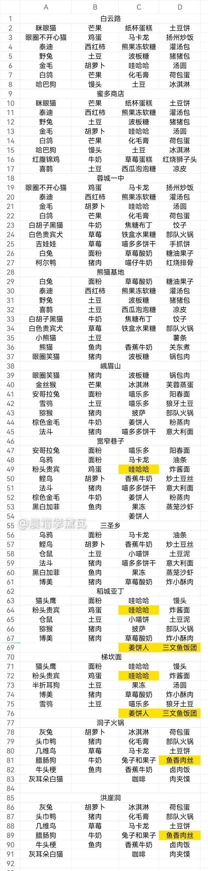 黄色标注的是不确定的食物~