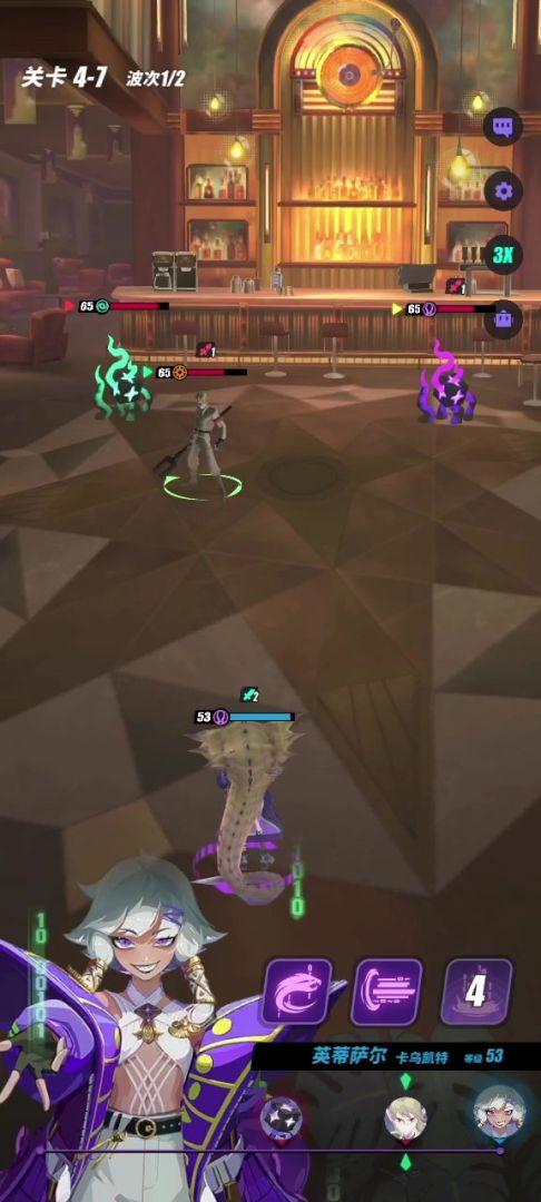 攻击全体敌方,伤害为自身攻击力70%,目标数量越少,伤害越高。延长目标1回合除无法行动状态外的减益。 战斗开始时获得2回合[隐匿]。
