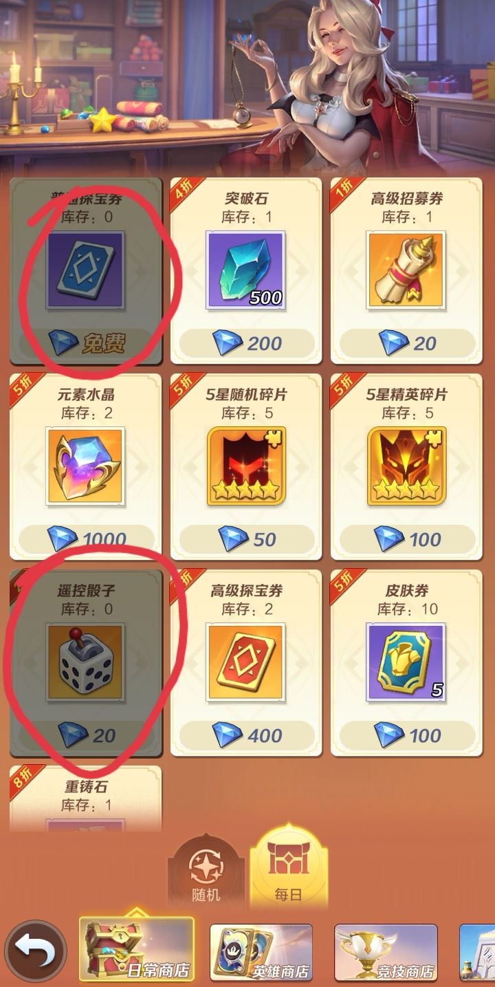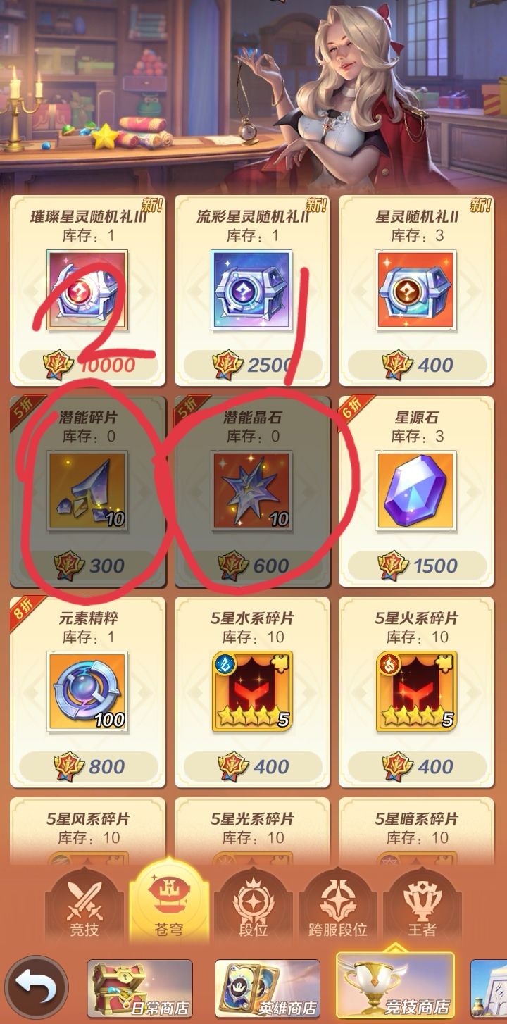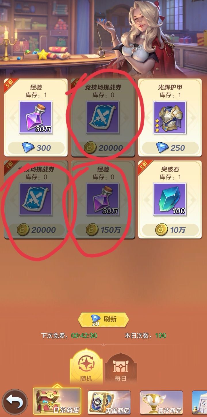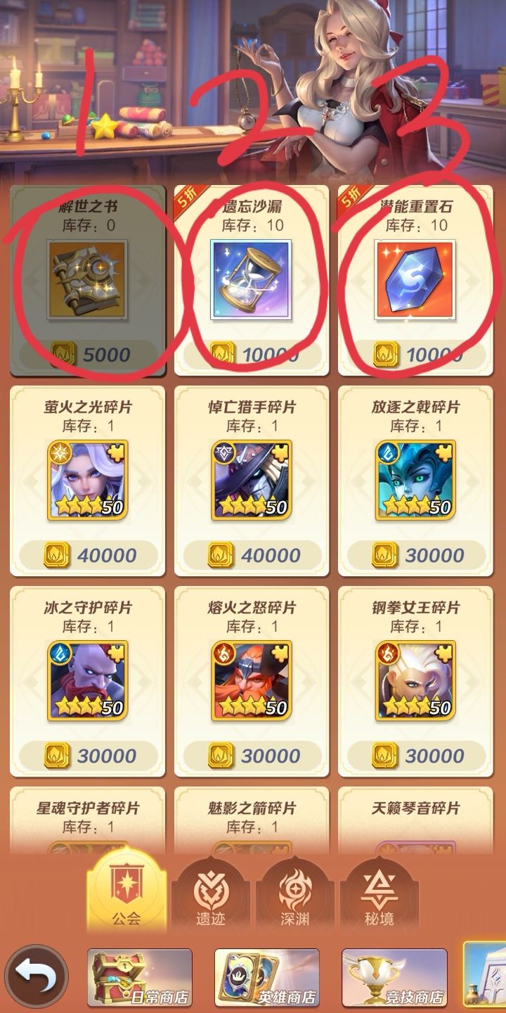 下面是偶总结要换【常驻商店】的东西,大家可以参考下,我都用红色的笔圈起来,优先换有标记1的。