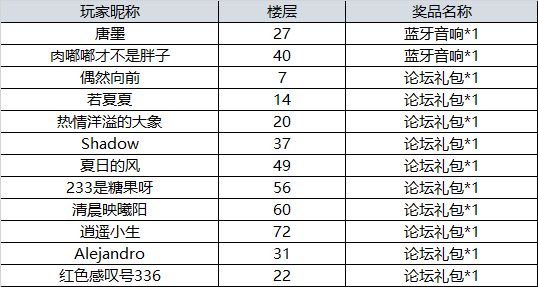 亲爱滴各位小伙伴,本次活动获奖名单如下,恭喜中奖的玩家~