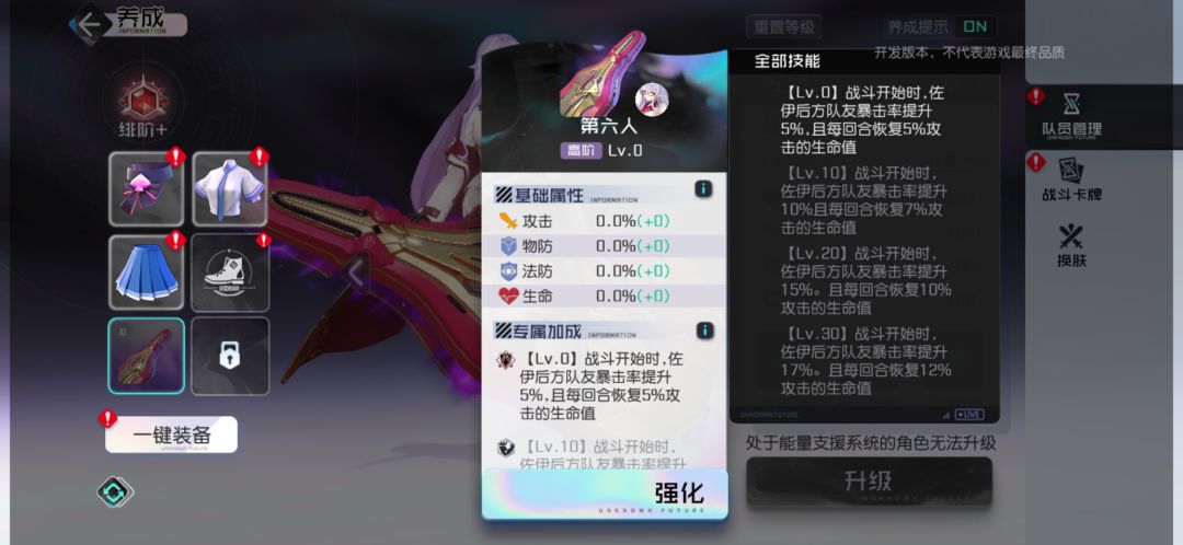 ②专属装备足够优秀,直接使佐伊的后方队友暴击率提高17%并且每回合回复12%攻击属性的生命值,提升了佐伊后排的输出能力和存活率。