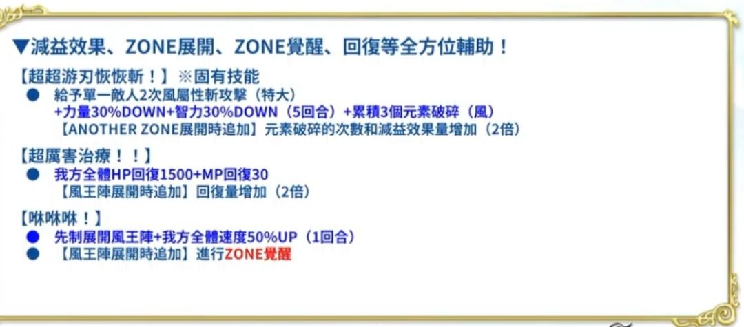 龙岛队有了水,火,土,风,无,斩,突多种打击面,未来预计还会补上【临机应变-打】和【临机应变-魔】或者实装打,魔类型的输出