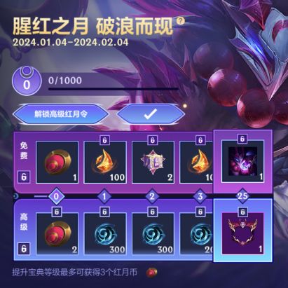 奖励:红月币,龙魂水晶,WRL纪念头像等,有概率得腥红之月 泰达米尔皮肤