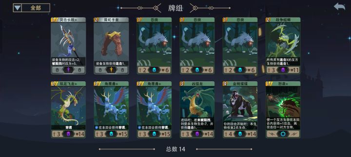卡组如图。没拿到咆哮,过塔时还剩700多币没用。