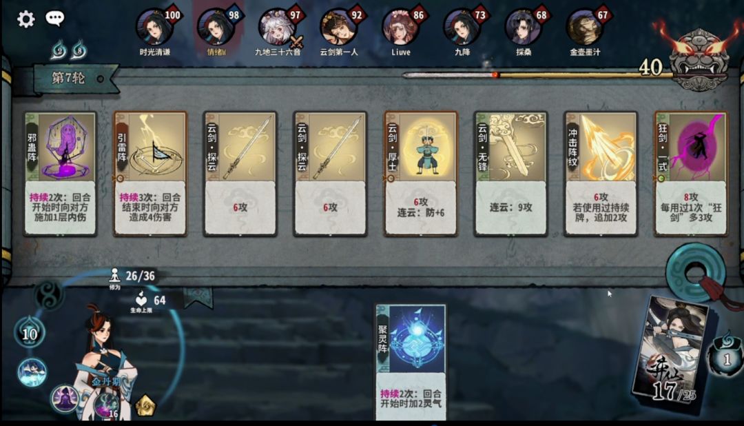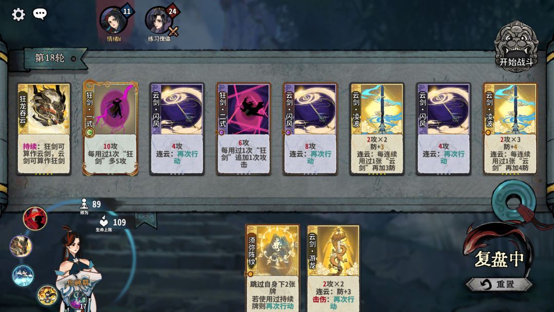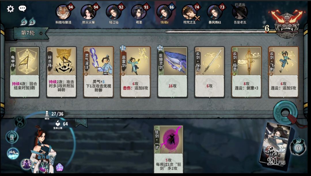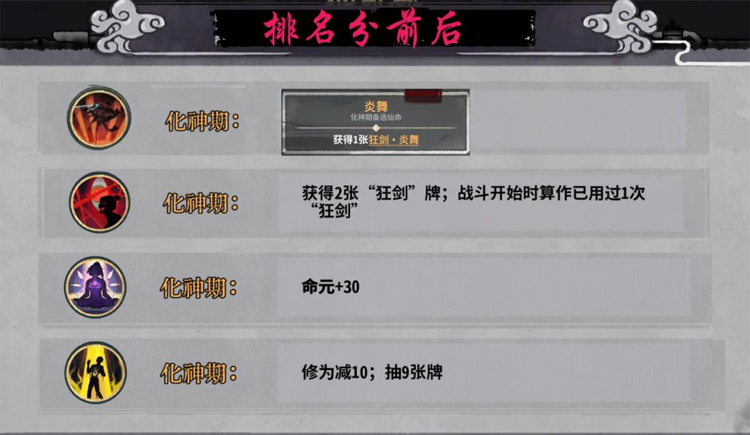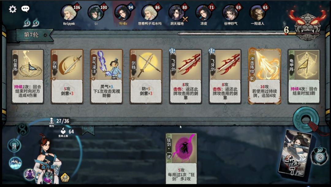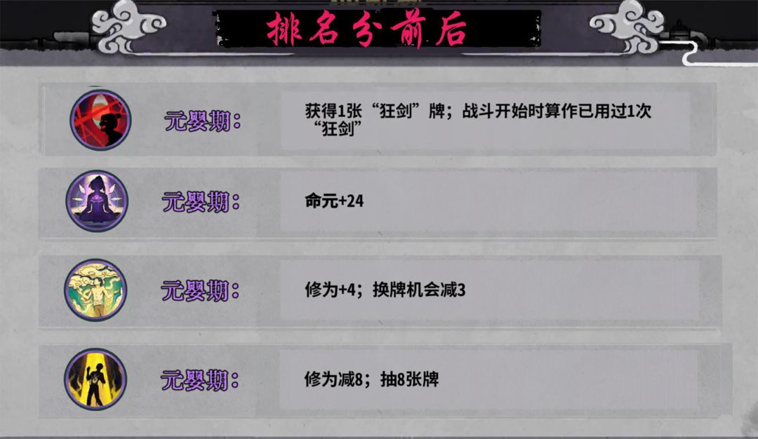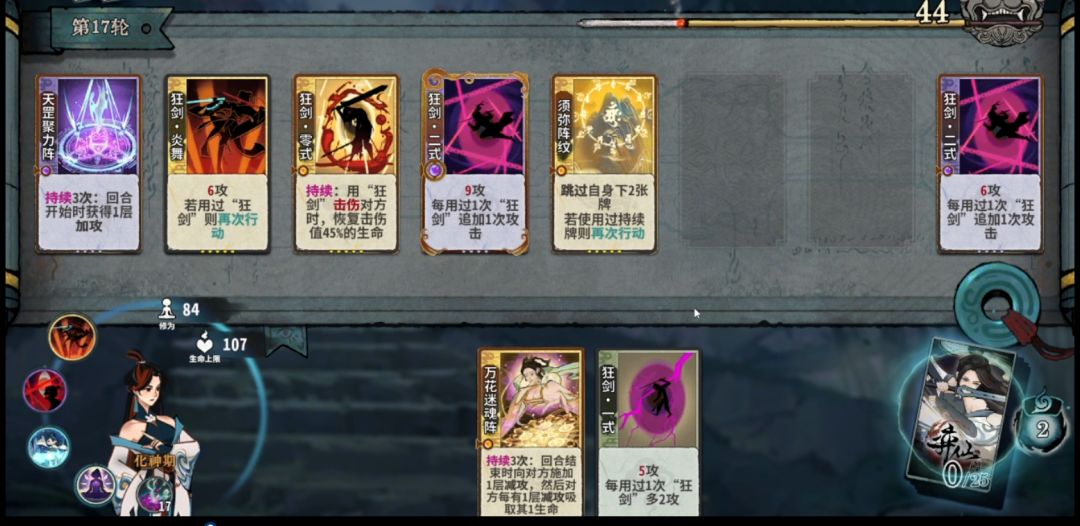 斩道:狂剑牌在元婴能够有效提高获得核心牌的效率,且能够根据来牌构筑少掉点血量。