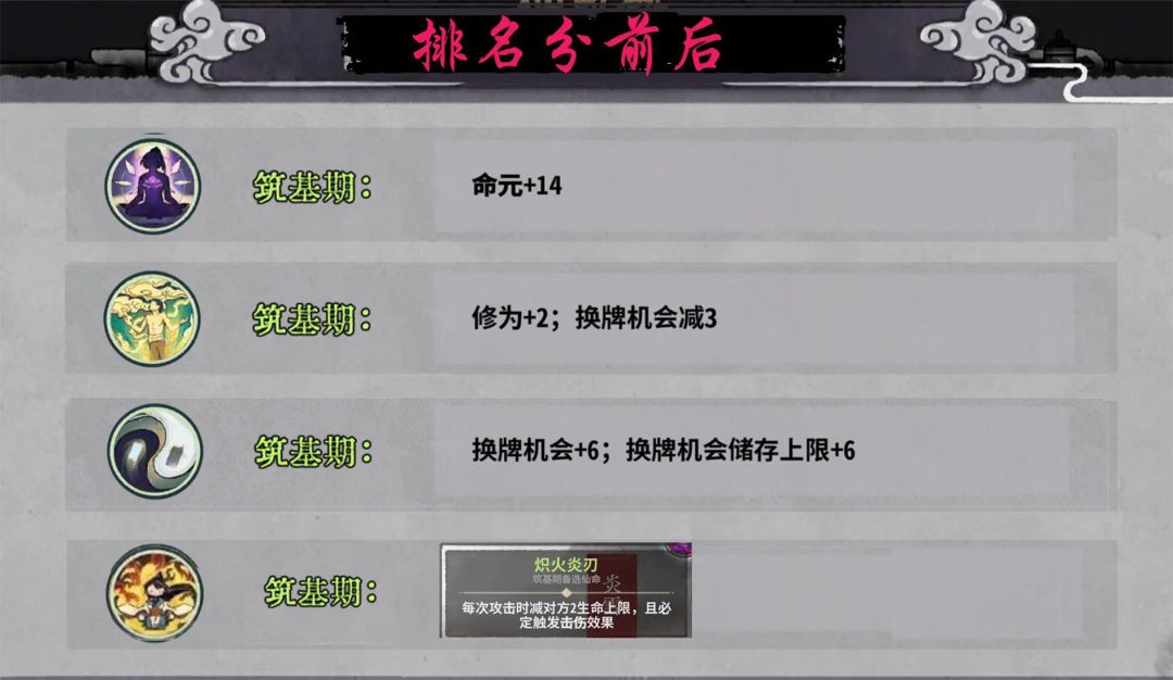 筑基期:休养生息>顿悟≥狂龙吞云>炽火炎刃