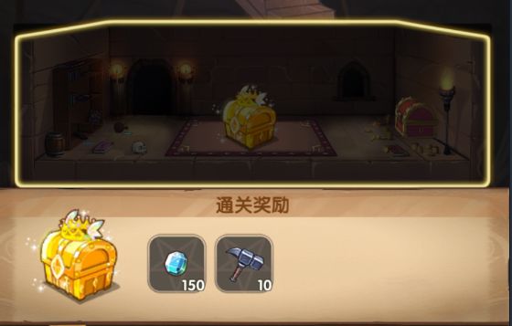 每个关卡可获得钻石、金币、面包、英雄碎片。根据关卡的不同,获得的英雄碎片种族不同。 每通过5关可获得一个宝箱奖励,可获得:钻石和装备强化道具