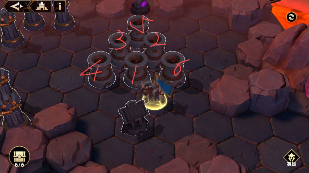这里的三角形按图中顺序点亮就好了。但是注意别点错了,挺容易点到旁边的火盆