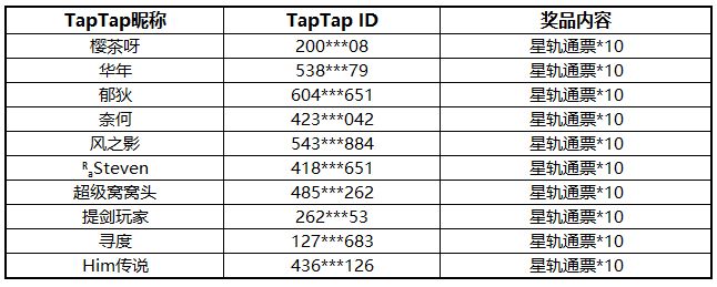 活动结束后,将会从所有成功参与的开拓者中随机抽取10名送出「星轨通票*10」。