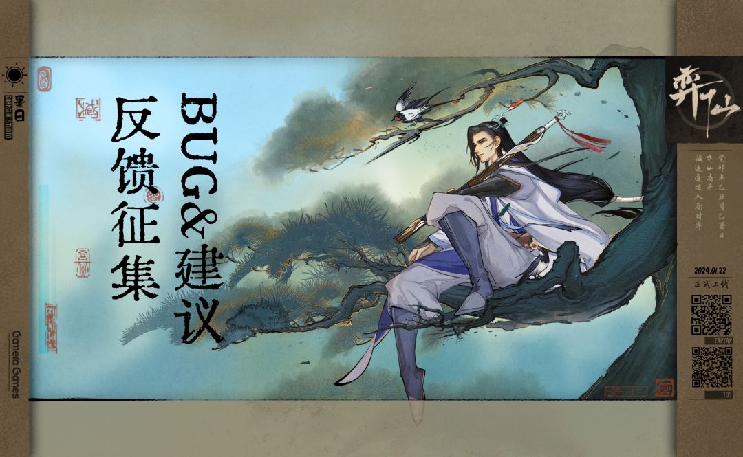道友们好,《弈仙牌》将会在 1 月 22 日 14 点正式开启!BUG 反馈&建议有奖征集活动同步开启。