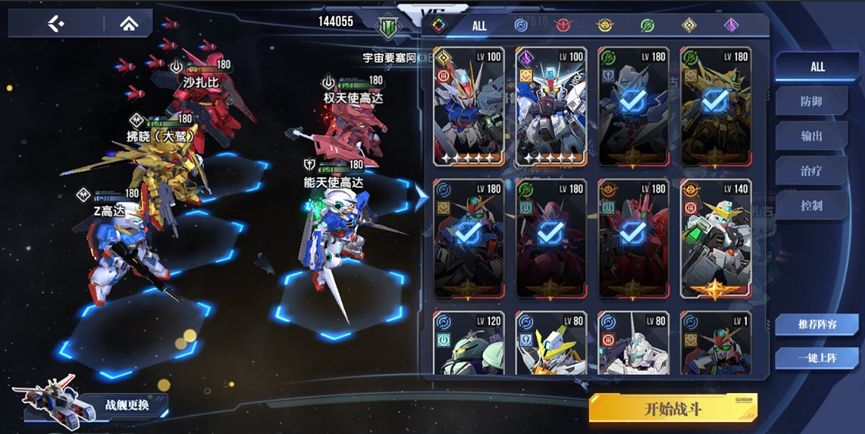 阵容机体:权天使高达、能天使高达、Z高达、沙扎比、拂晓(大鹫)