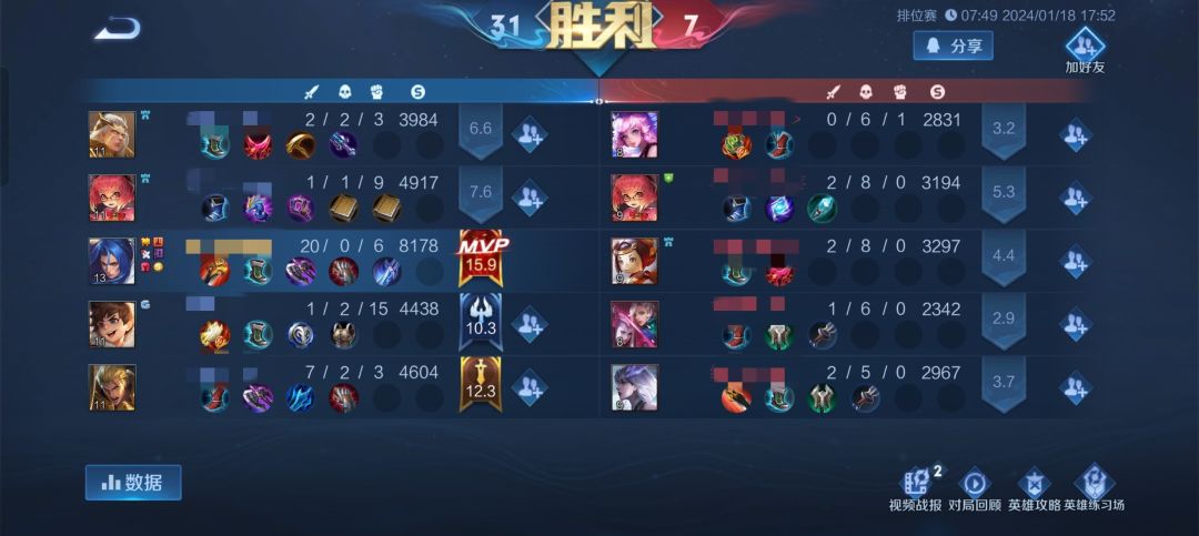 王者荣耀的游戏节奏是相当快的,游戏不用回城购买装备,优势局可以做到一整局不回家的效果,如图片4所示,碾压局基本上是7/8分钟一局甚至可以更快。游戏中更偏向个人竞技,尽管对局有一到两个玩家很菜,只要c位能挑起大梁都可以影响游戏的对局变化。感觉王者荣耀经过这些年的变化已经变成了社交性游戏,出皮肤的速度也越来越快,渐渐失去了曾经和好友开黑时的感觉,也可能是我已经失去那个青春的感觉了吧![[表情_石化]](https://img-tc.tapimg.com/market/images/d02944d26ae82731651316676ca6dd45.png)