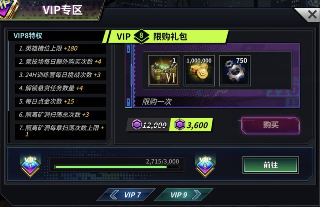 1.VIP8档位的礼包改动,调整为专属武器自选箱Ⅵ,100W金币,750锻造零件(已经购买过VIP8档位礼包的探长,维护后该档位会单独重置,重新购买);