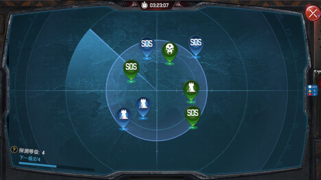 基地建立雷达后获得的功能。任务每日定时刷新,探测次数越多等级越高,所能找到的任务等级和数量也会越高,能找到藏有更强大伙伴的废墟和更多的幸存者,更好地补充基地的资源和士兵。