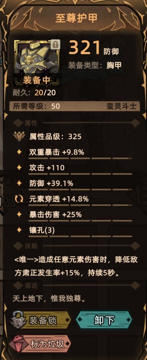 元穿:双爆甲15+超越10+雷电加码24=15+10+24=49,词条需要补的就是元穿