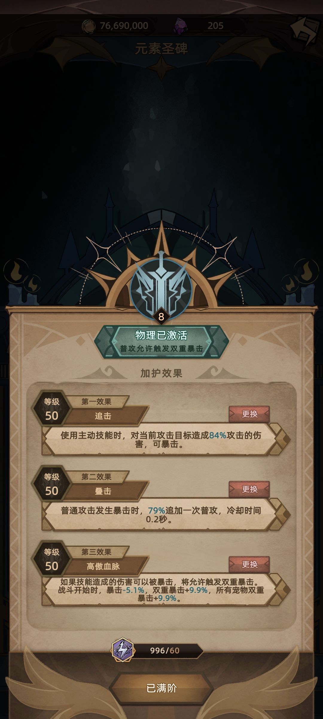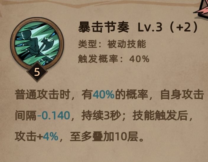 暴击节25级,在之前测试中是100%几率触发,正式服懒得重置加点了,应该没差