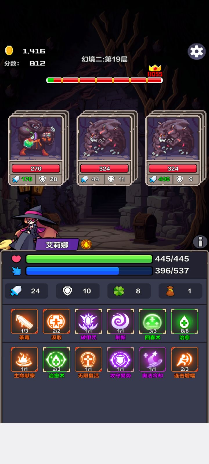 防御减半,逆转平A,打boss直接刷新boss就挂了emmm周而复始,打不过就刷新,感觉无敌了,后面几个人物都没解锁正在刷,无限治愈