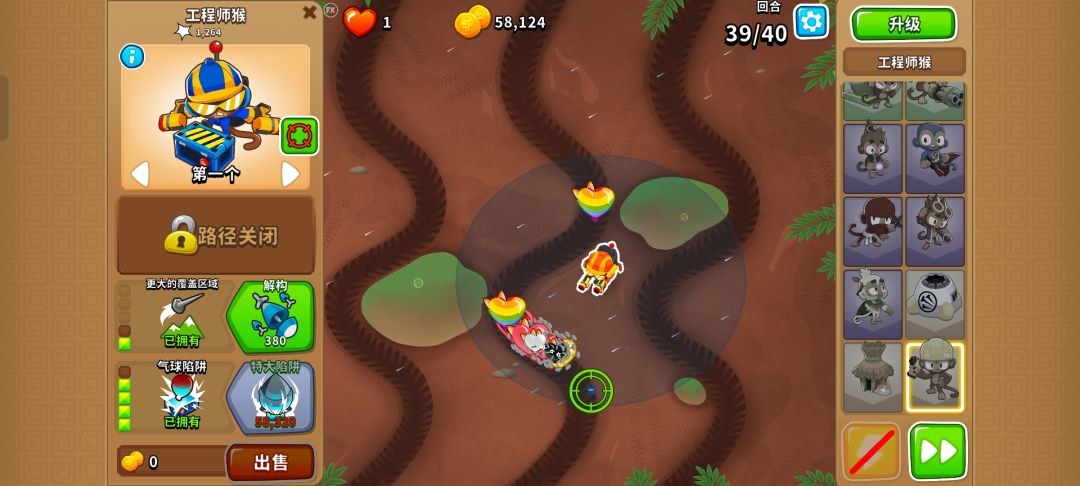 1 042海盗猴,40波开始就抓紧开技能,moab跑的可快了