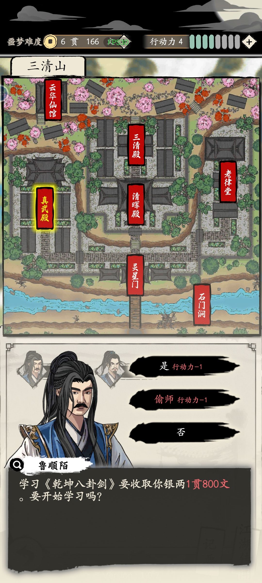 偷学功法:邀请完队友后我们就可以利用侠义值去各个门派传授武学的地方偷学功法了