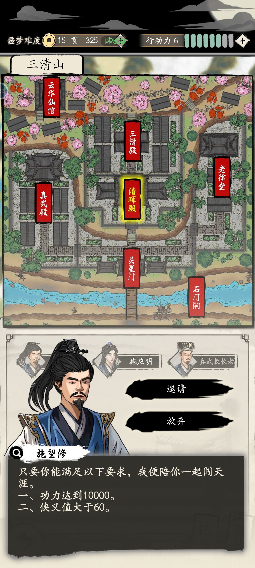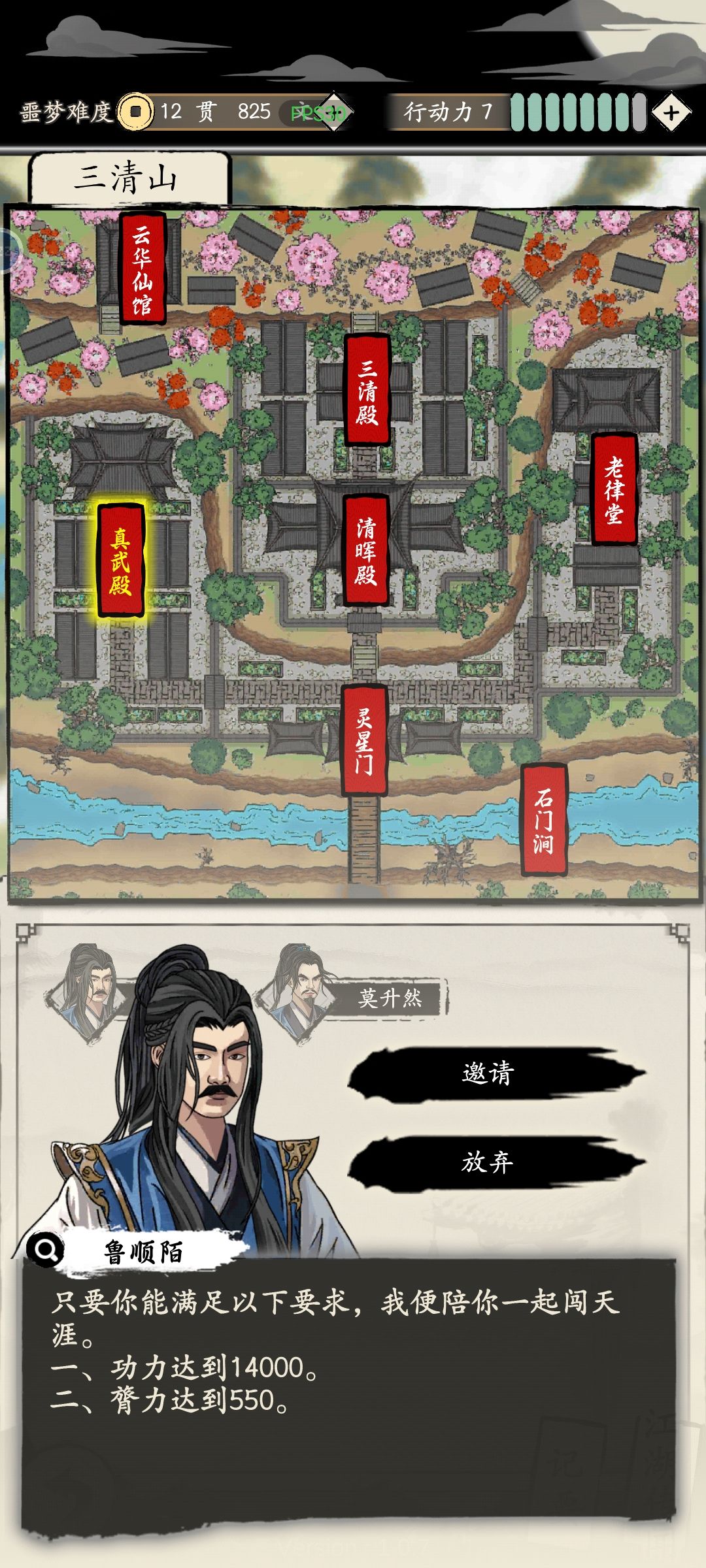 这阶段我们功法数量是十个的话我们就只需要再邀请自己门派的鲁顺陌和施望修这两个人