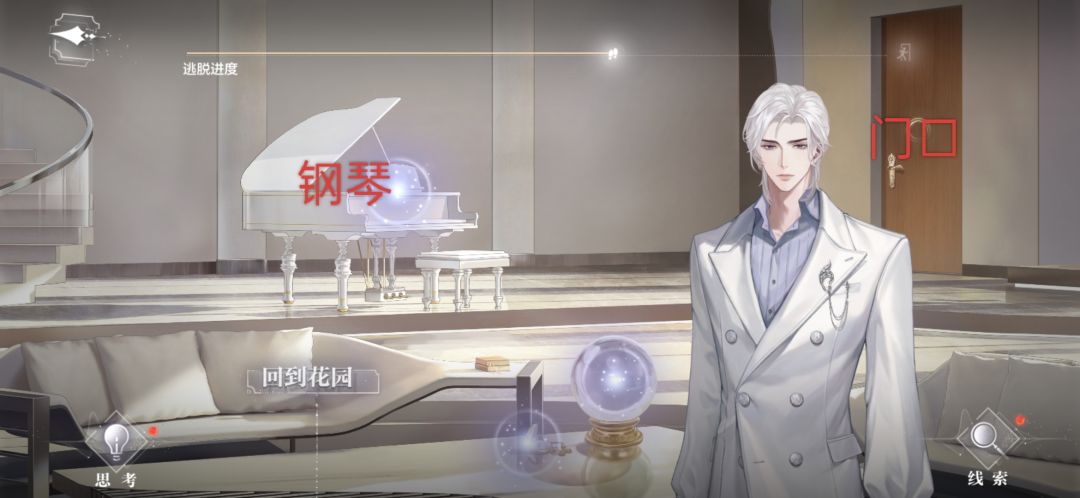 钢琴处"观察"—"弹奏",只弹奏白色棋子对应的琴键,同结局一图所示