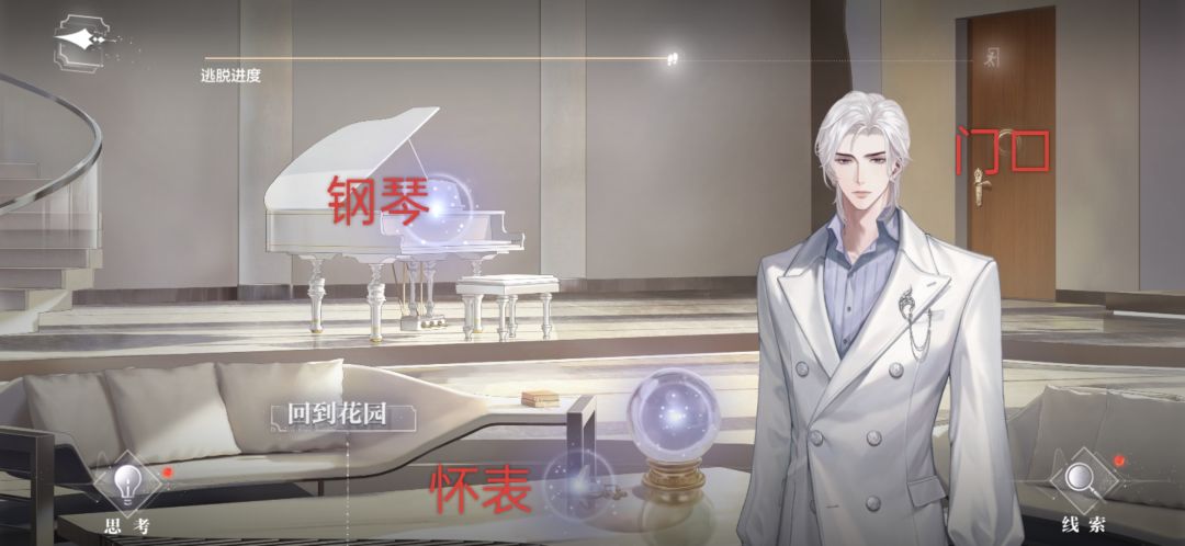 第三个房间——门口处"观察"—怀表处"观察",思考得出"夏萧因的身份"(此处一定要思考)