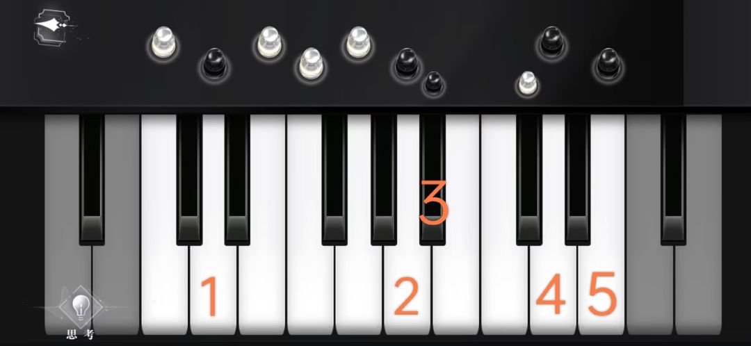 钢琴处"观察"—"弹奏",进入钢琴界面后,点击思考得出"位置与颜色",然后只弹奏白色棋子对应的琴键,如图