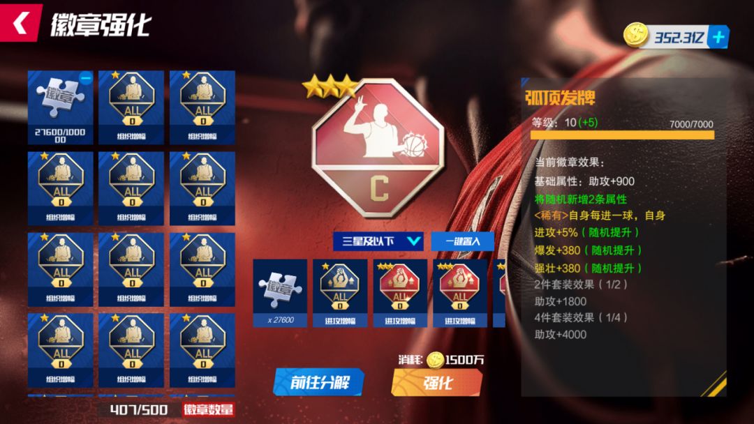 优化徽章装配页面,打开即显示当前球员徽章装配情况以及徽章信息和数量,经理人们可以直接装配和替换,简化系统工序。此外,点击球员将会放大球员徽章展示状况,从而提升经理人们的使用体验!