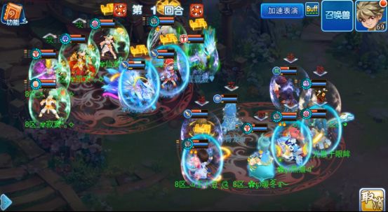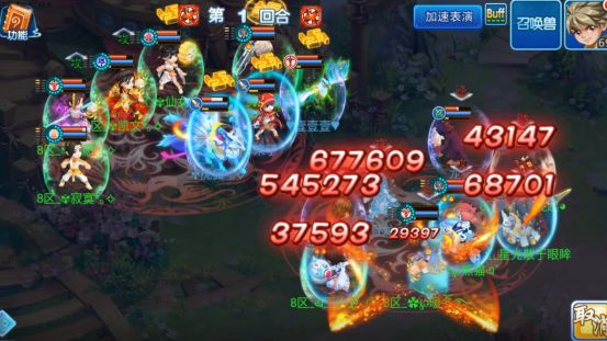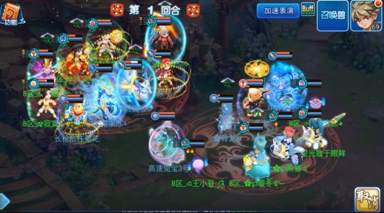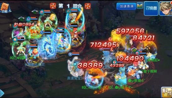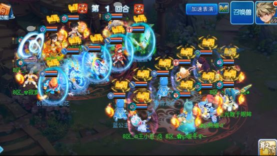 开局【晚睡队】道士选择强攻自己的孙小萌特殊攻宠,但可惜对方有御见神兔保护,最终未能成效;而没有封印限制的【梦之队】三输出一起出手,瞬间打出连锁效果将对方两人打倒并且打残剩下3人血线;
