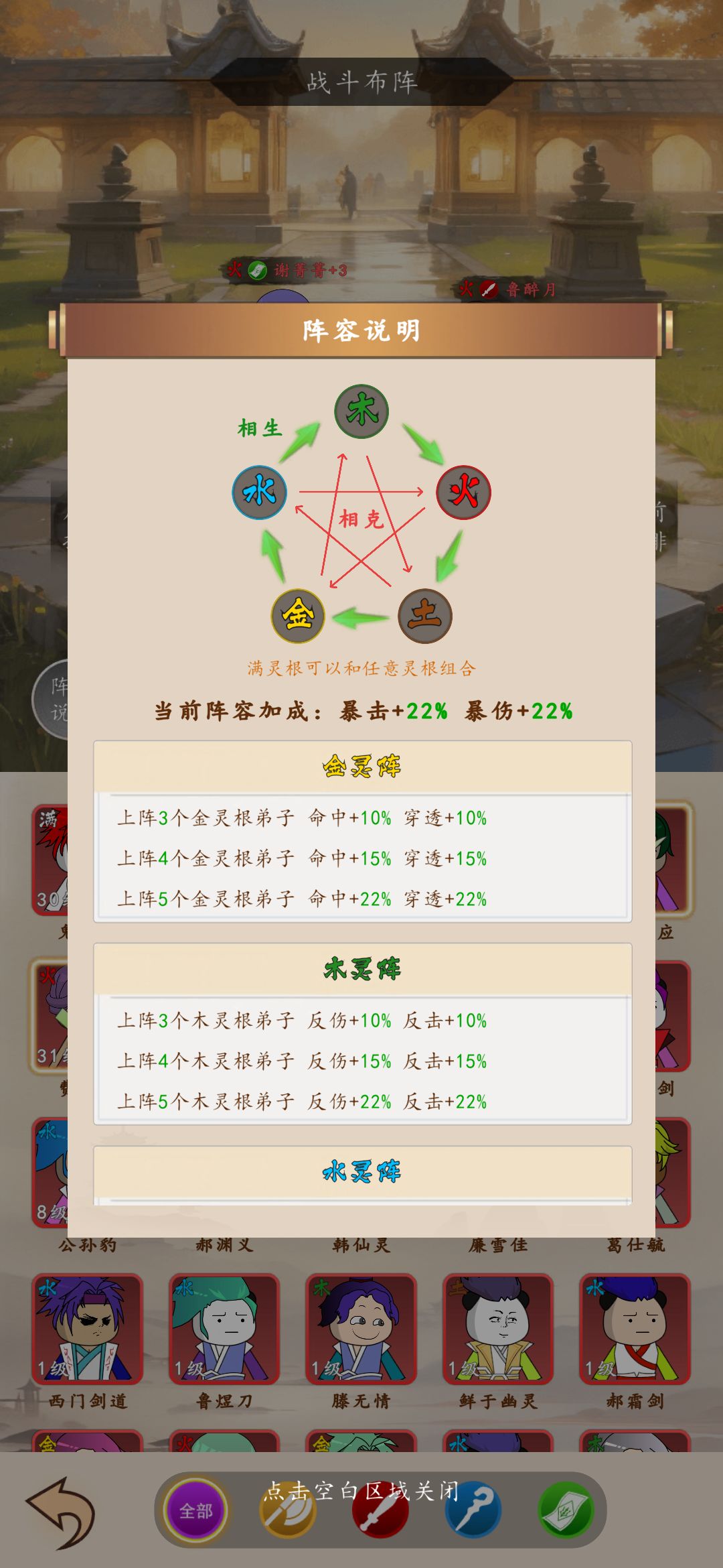 2.弟子有属性区别,然后多属性上阵会有额外加成