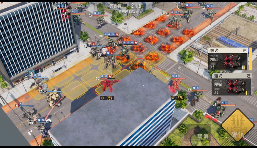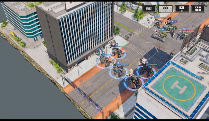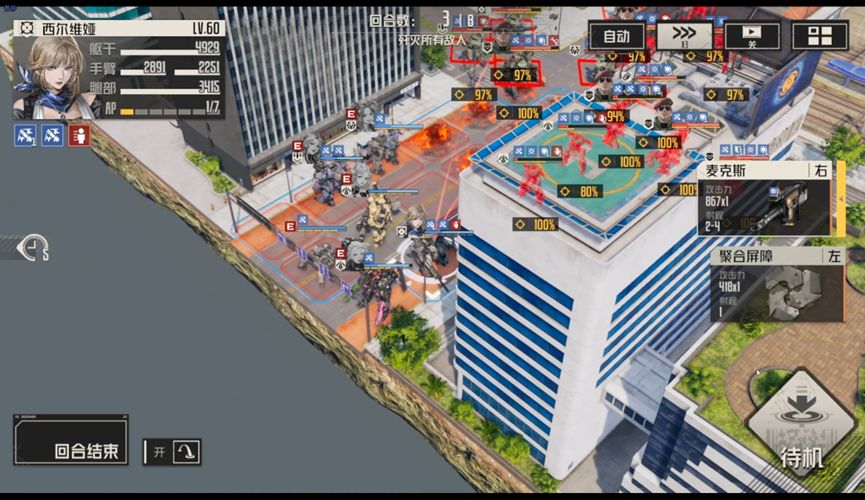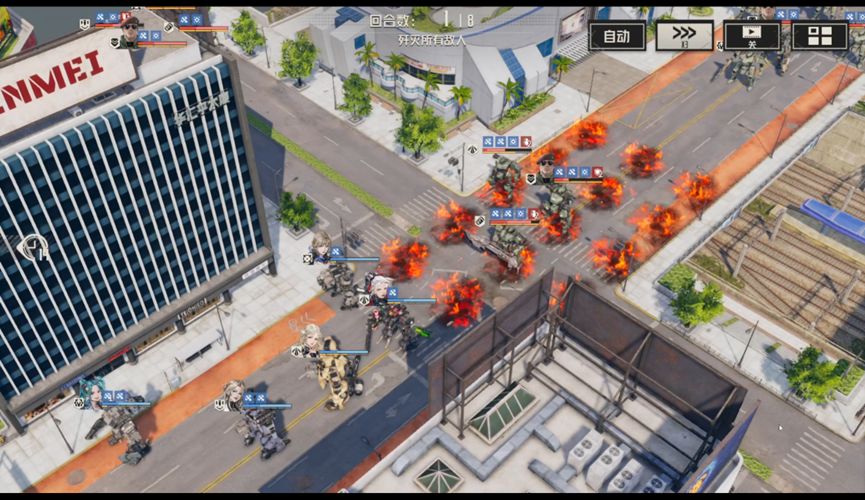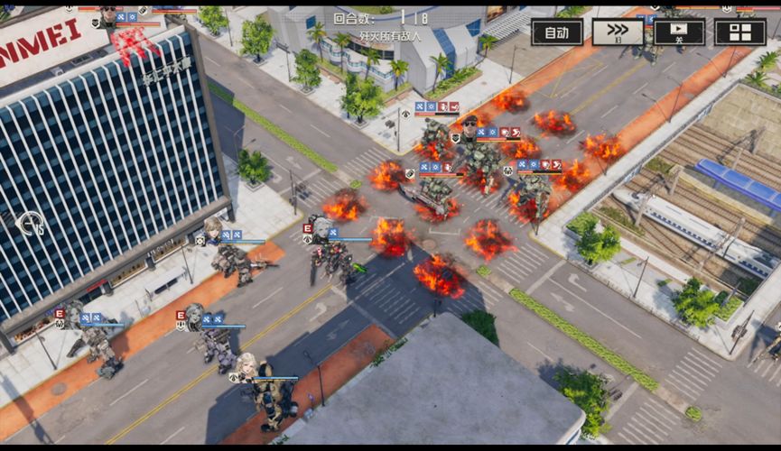 本文主要介绍第二种,即开局击杀维修后将精英断手断脚,并保留其躯干卡位。因为除了头目和电磁炮外,其实都是单手武器,用希尔可以轻松断手。之后边打边往后撤退,全员缩到街道末尾,希儿带移动包外出游走打断火箭兵手,按敌人行动顺序规划卡位,最后依靠艾琳AOE磨血后在一回合同步击杀。