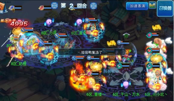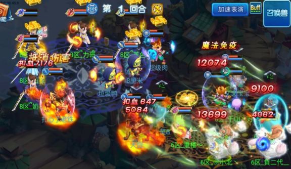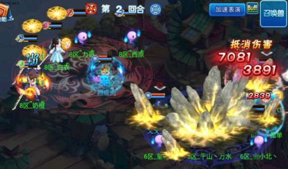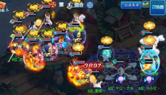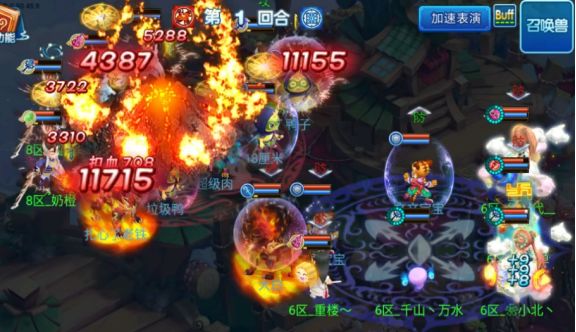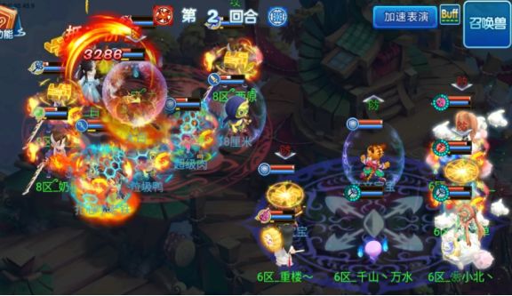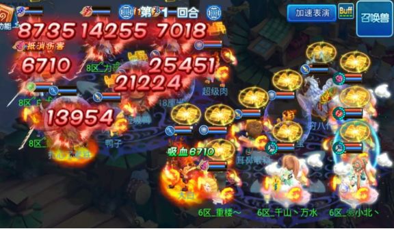 开局双方医生“舍利”,由【菜鸟队】攻宠先攻在多只攻宠和青隐群秒的配合输出下成功击倒对方两位法师,在第一回合结束时【菜鸟队】全体主角存活,【野鹤队】虽然只有3名主角存活,但状态基本良好;