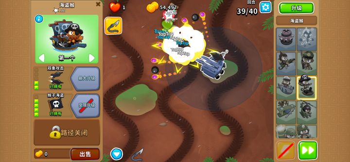 240海盗 进去就狂点技能避免moab出来的时候漏掉 不行就别开自动关卡 也可以
