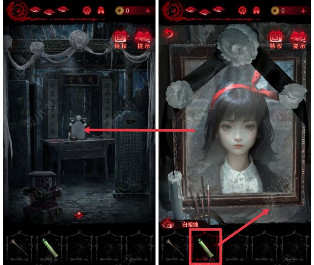 18.(丧仪堂)点击供桌,放上【白蜡烛】