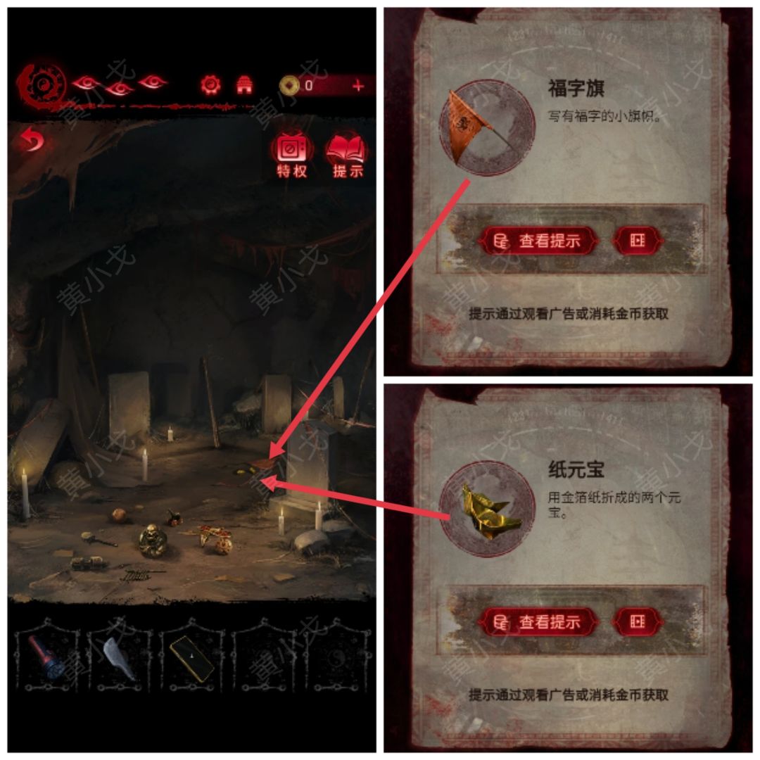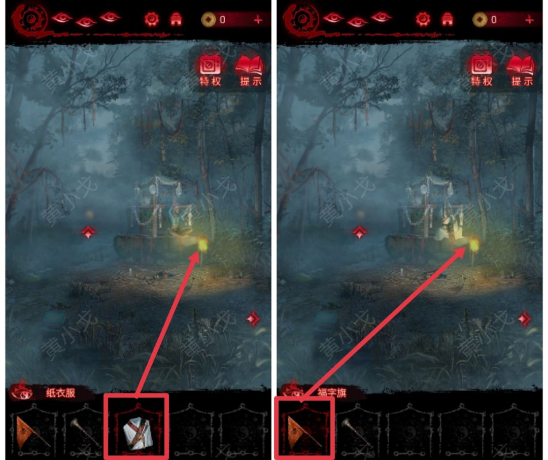 8.点击拾取地上的【福字旗】和【纸元宝】
