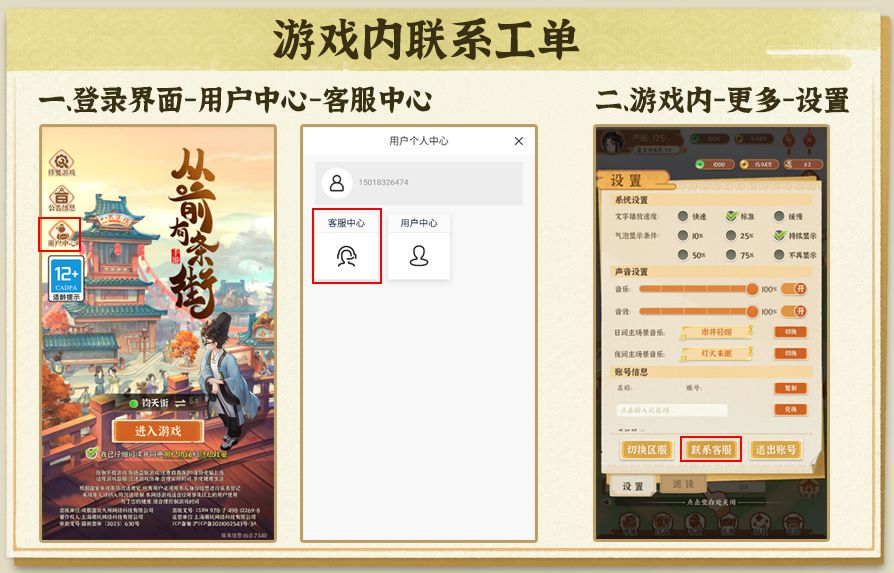 2)游戏主界面-更多-设置-联系客服