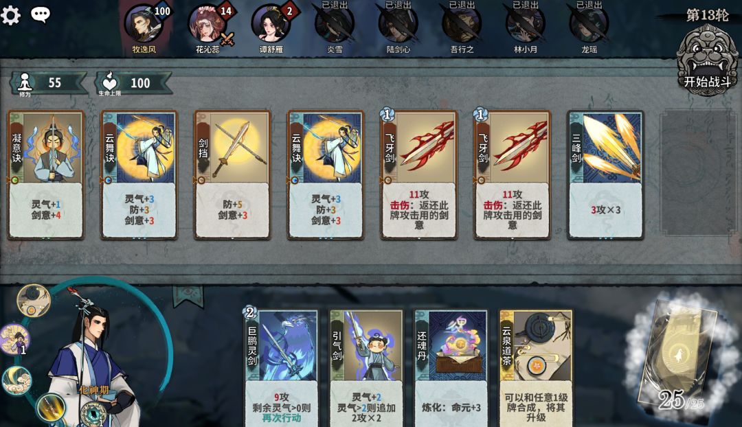 重复第三步的流程,合成、替换、然后炼化卡牌,最后点击开始战斗即可。等修为足够突破化神期后,点击突破,然后点击确定获取一张云泉道茶即可!