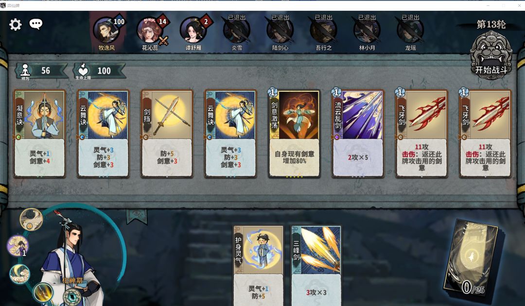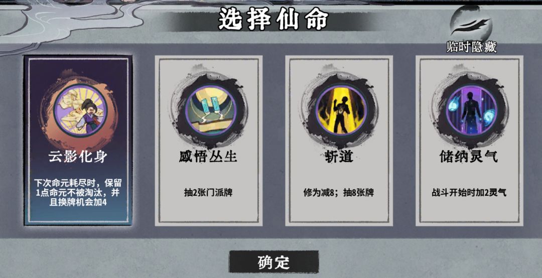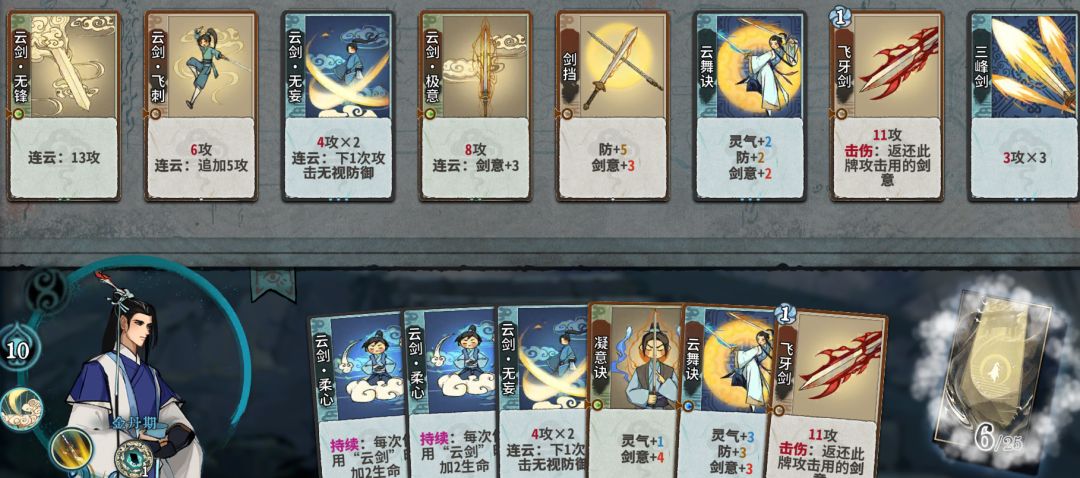 看完动画回到修炼界面,我们手上应该又抽了三张卡牌: