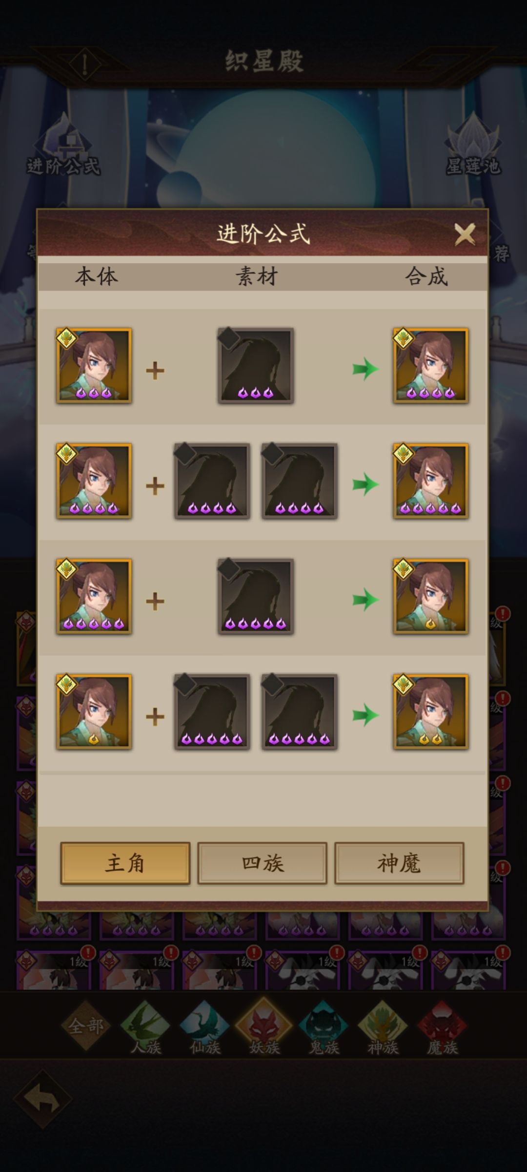 1)主角进阶:如下图主角3-10星的进阶消耗