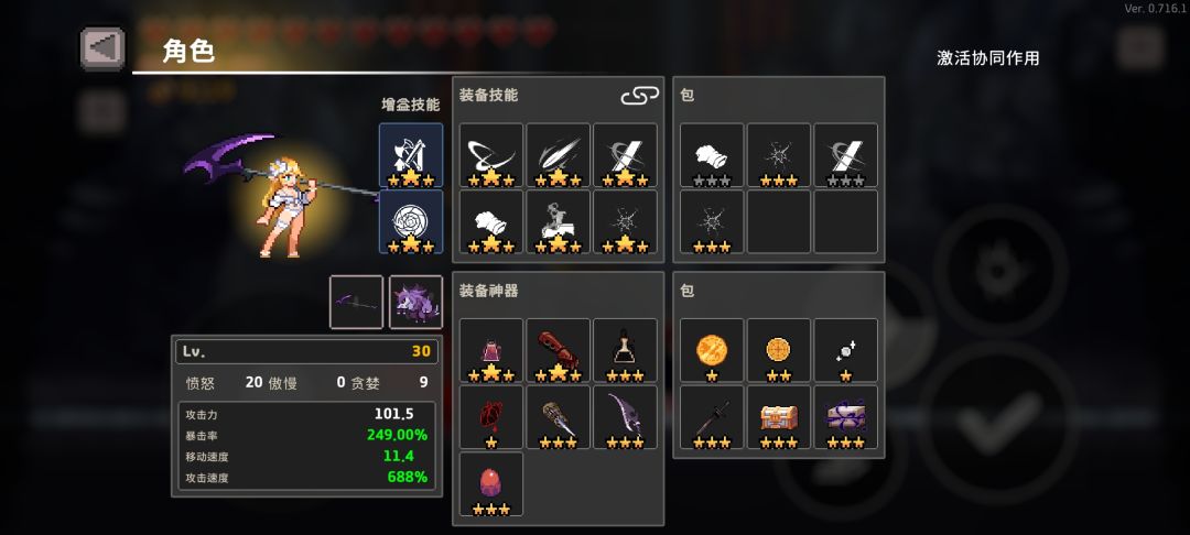 祈祷加点的话推荐是点5贪婪剩下的点愤怒,带上个箱子保障出货率,整套有3个4星圣器,没有点幸运会很难受,贪婪也不需要点太高,愤怒低了前期清怪会有点难受