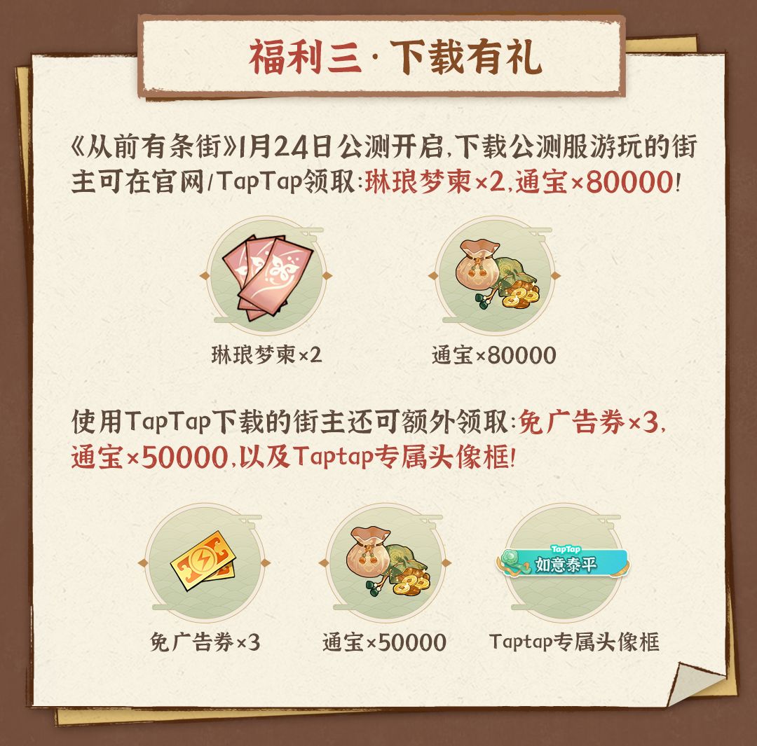公测9大福利抢先看丨《从前有条街》1月24日公测开启!