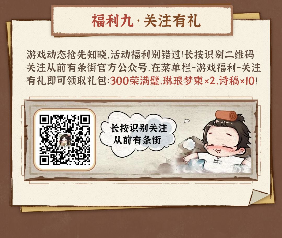 扫描下方二维码关注从前有条街公众号,点击菜单栏-游戏福利-关注礼包即可领取~