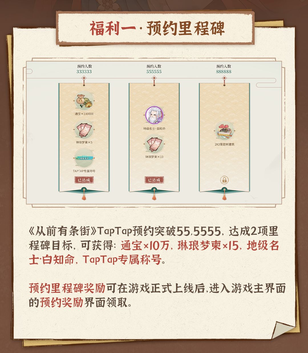 TapTap预约突破55,5555,街主下载公测服即可领取10万通宝、琳琅梦柬×15等里程碑奖励!
