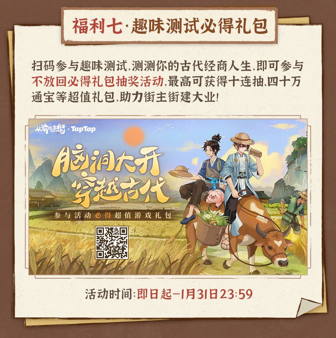 点击链接或扫描下方二维码从前有条街H5趣味测试带你体验经商人生,参与必得公测游戏礼包~